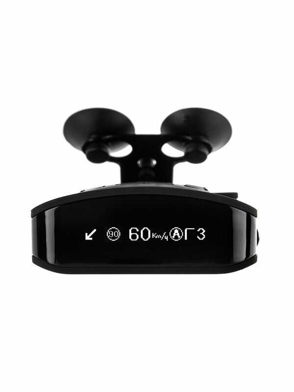 - OLED-дисплей отображает скорость, тип камеры, дистанцию до объекта и текущий режим. Шрифт адаптирован для быстрого восприятия (высота символов — 7 мм).