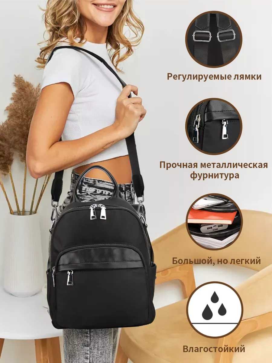 - + Вместимая, хорошая сумочка-рюкзак. Фурнитура качественная. Нейлон плотный, смотрится хорошо.
