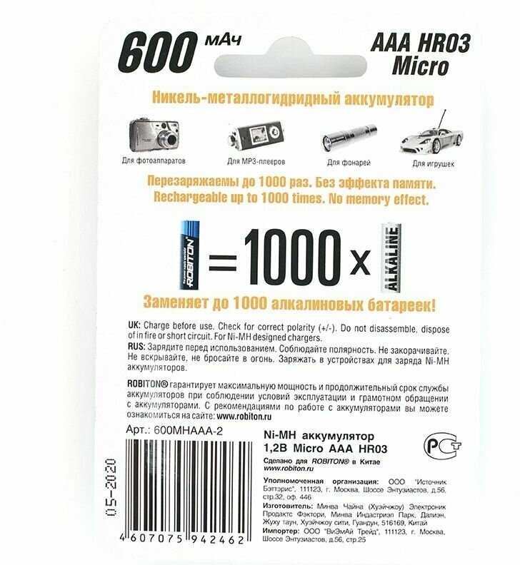 4 отзывов пользователей o ROBITON AAA R03 Micro 600