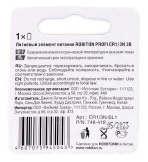 55 отзывов пользователей o ROBITON Lithium Profi CR1/3N
