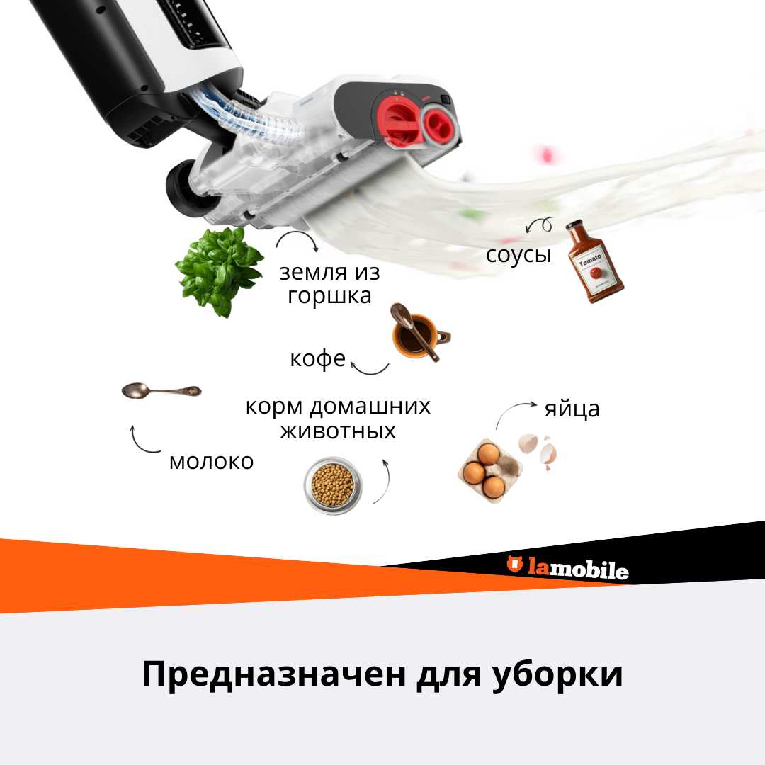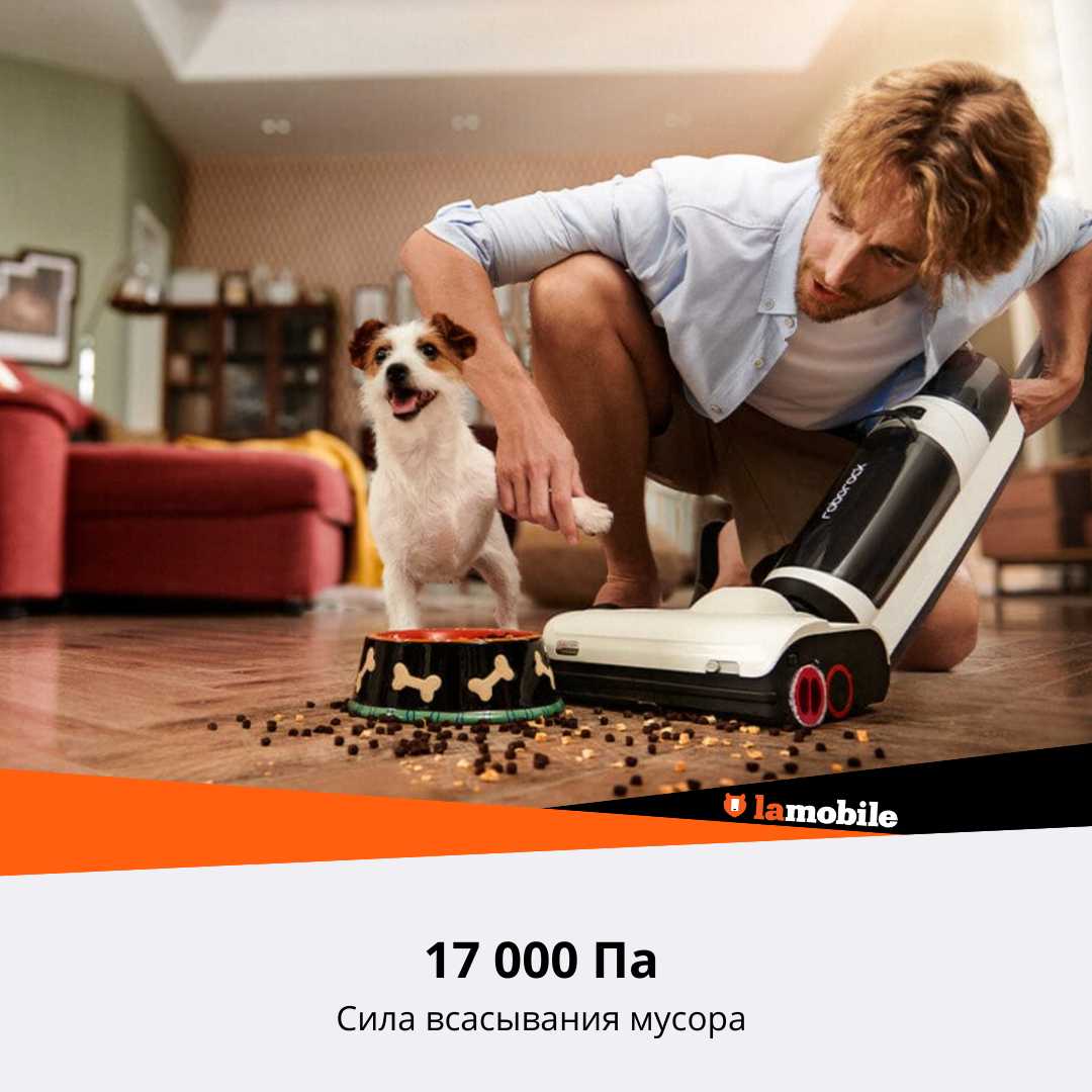 - Мощное всасывание и эффективная уборка шерсти, мусора и засохших загрязнений: