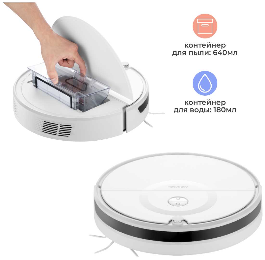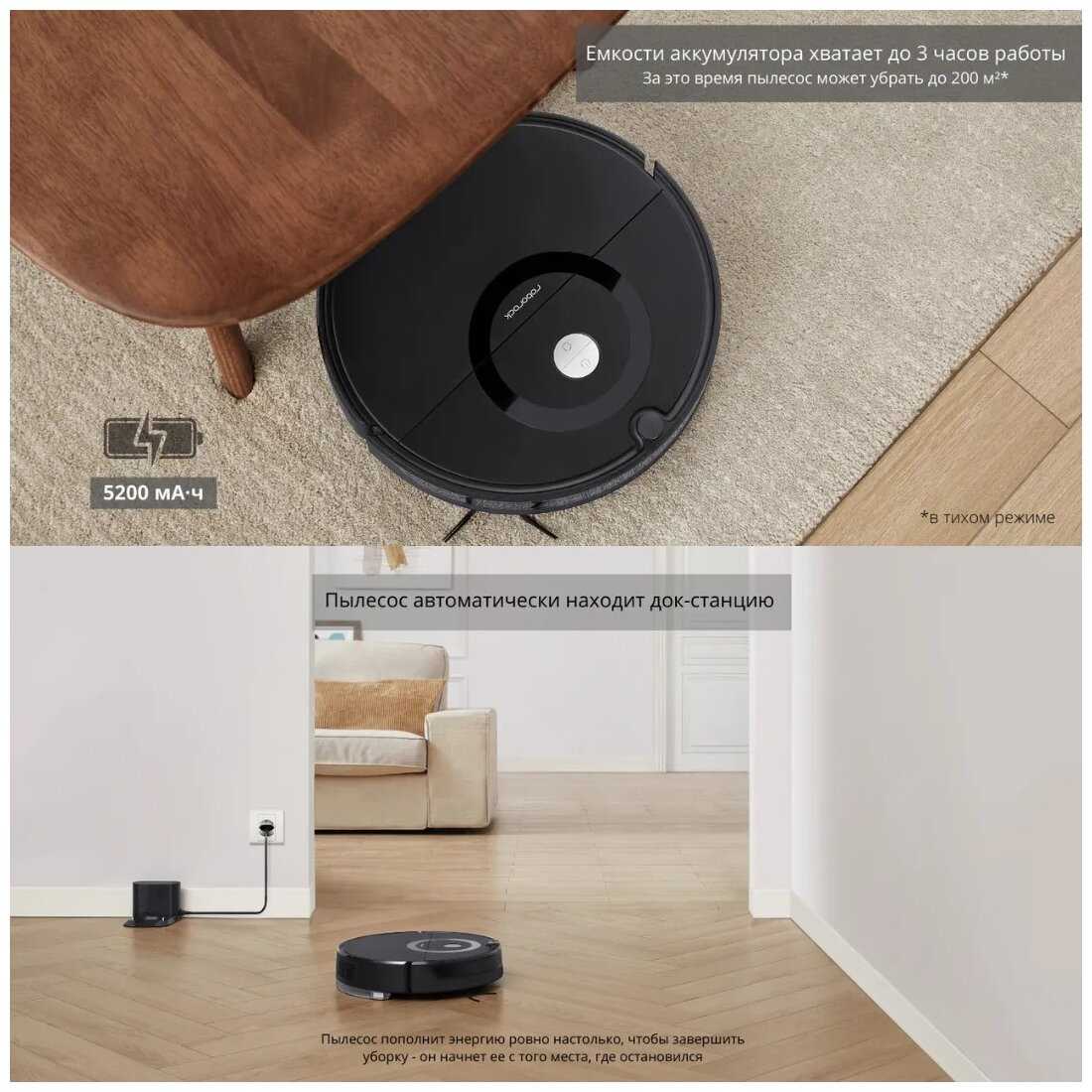 Очень долго думала перед покупкой робот-пылесоса. Просмотрела много видео-обзоров, прочиталу кучу комментариев. По итогу решилась именно на эту модель, соотнеся цену и характеристики. Думаю, что не прогадала с выбором. Он очень тчательно пылесосит, несколько раз в разных направлениях проходит по одному месту, легко пылесосит ковролин и коврик в прихожей, но не справляется на паласе с длинным ворсом-это чуть расстроило. Еще из минусов вомжно отметить шум, но видя результат и оценивая уровень всасывания можно и потерпеть. Он залезет во все места, куда может залезть по своим габаритам и очень дотошно соберет всю пыль, иногда мне кажется, что внутри сидит маленький гномик и производит эту пыль, т.к.казалось бы чистый пол, а он все равно что-нибудь насобирает, дома живет короткошорстная кошка, но в пылесборнике всегда очень много ее пуха, за 10 уборок можно из собранного пылесоса свалять копию питомца. Удобное голосовое сопровождение, на русском языке, приятным женским голосом, предупреждает о начале и завершении уборки, о возврате на док станцию и начале зарядки, об извлечении и установке мусорасборника, работе от пульт-управления. Док станцию находит быстро, паркуется на нее очень умело и точно. В комплекте имется тряпочка для влажной уборки, имеет легкое крепление, легко очищается после уборки и самое главное, что пылесос одновременно может делать сухую и влажную уборку, за счет этого на тряпочке нет шерсти и иного мусора. Удивило и очень обрадовало, что при уборке залазит под кухонные шкафы которые чуть-чуть выше его самого. Приложение в телефон еще не установленно, пока работаем от пульта ду.