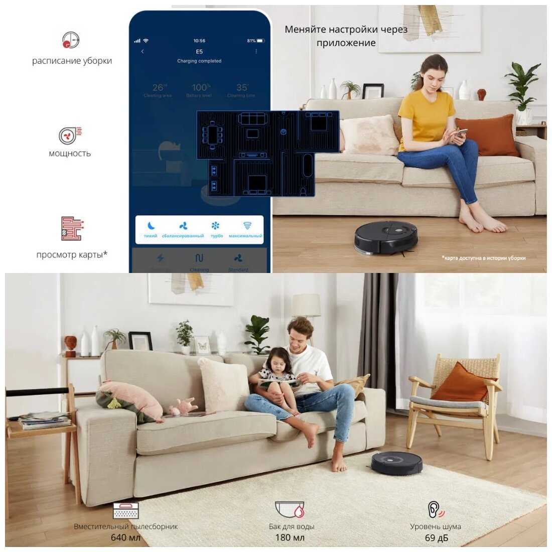 Влажная уборка — слабое место устройства. Механическая подача воды и минималистичная тряпка подходят лишь для освежения полов, но не заменяют полноценную мойку. Пользователи отмечают, что для борьбы с засохшими пятнами лучше предварительно пройтись роботом в сухом режиме. Еще один нюанс — шумность: на максимальной мощности E5 сопоставим с традиционными пылесосами, что ограничивает время его использования в семьях с маленькими детьми или ночными графиками.