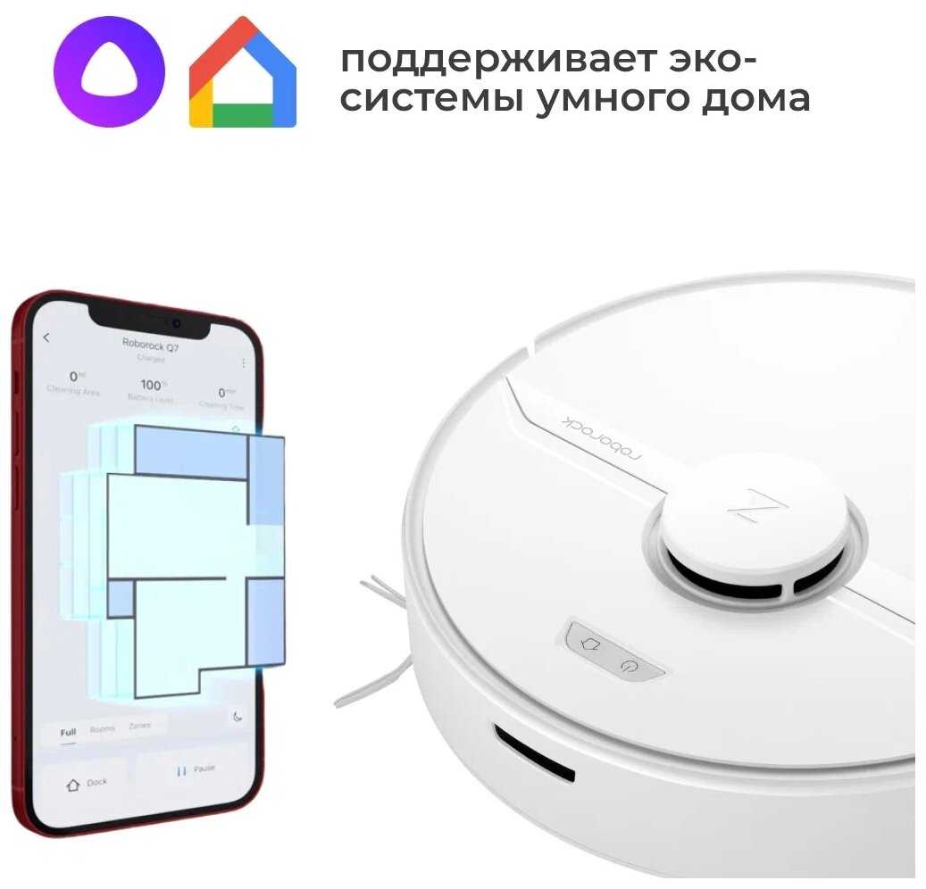 - Поддержка Roborock, Mi Home, Яндекс Алисы и голосового управления позволяет настраивать расписание, выбирать комнаты и регулировать мощность удаленно.