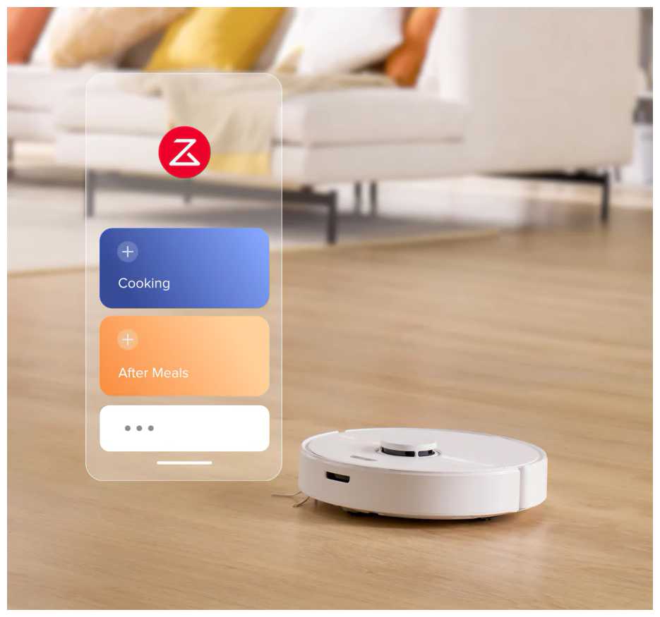 - В приложении доступна кастомизация режимов: интенсивность всасывания, уровень увлажнения, приоритет зон.