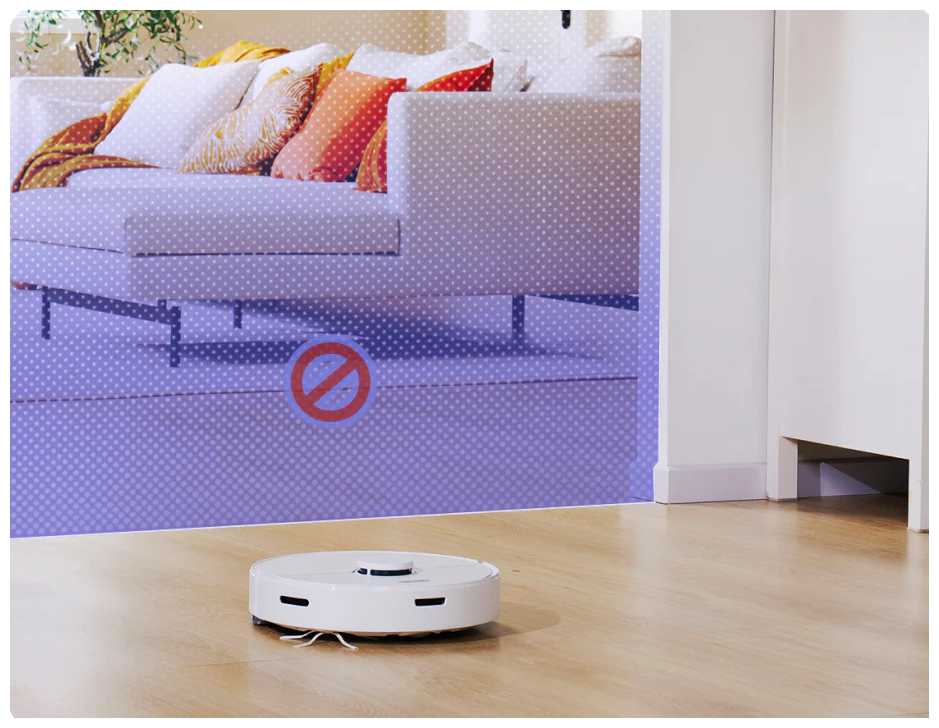 - Возможность настройки виртуальных стен и зон через приложение, включая запрет влажной уборки на коврах.