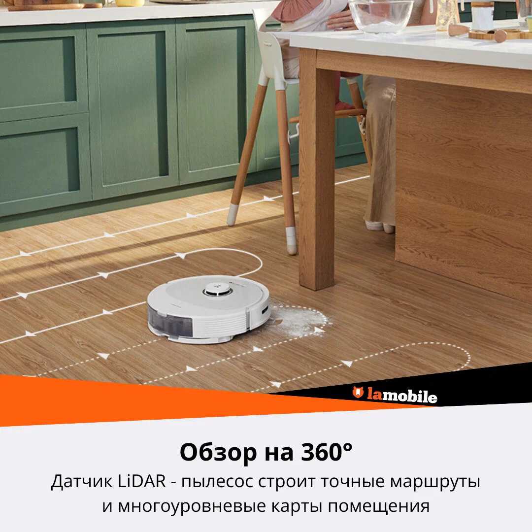 - Лазерные датчики сканирования обеспечивают плавное объезд мебели и предметов без ударов, в отличие аналогов (например, Neato).