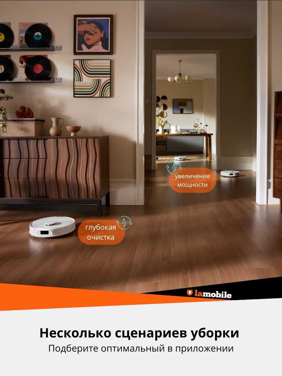 - Функция сохранения нескольких карт этажей (до 4) позволяет использовать робот в многоуровневых квартирах или домах без повторного сканирования.