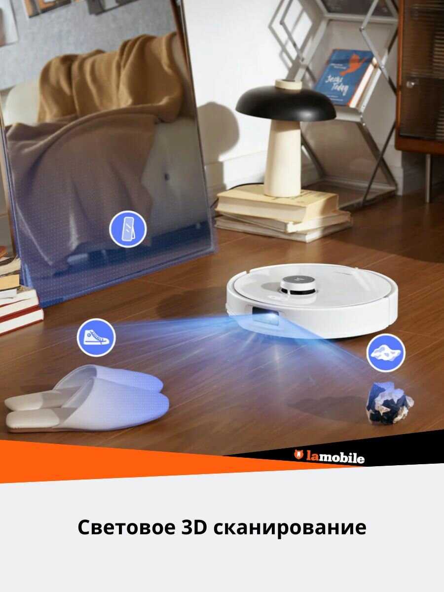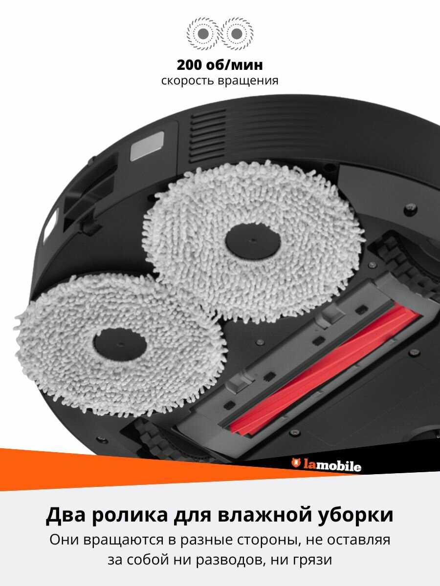 - + мощный, выметает и моет в углах, запускается на русском голосом без колонки и мобильника, моет и обеззараживает салфетки, есть подсветка, лидар, камера для наблюдения и связи, прыгает через 3 см пороги.