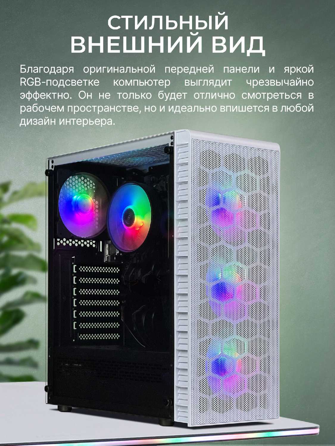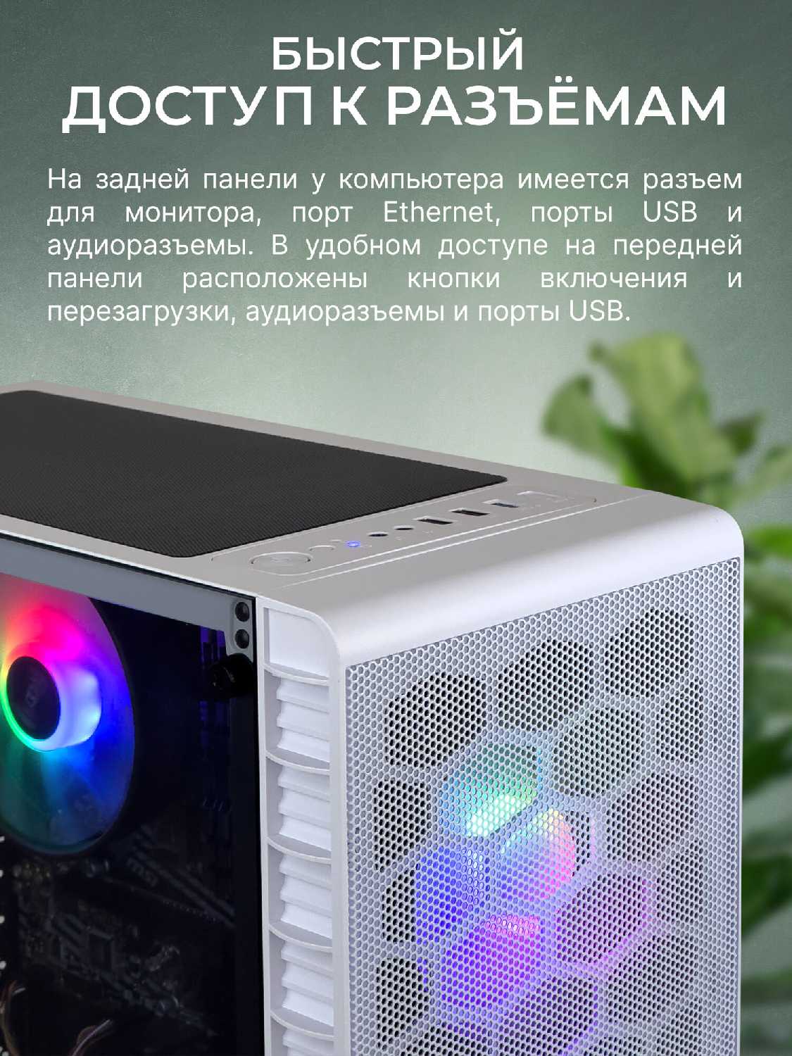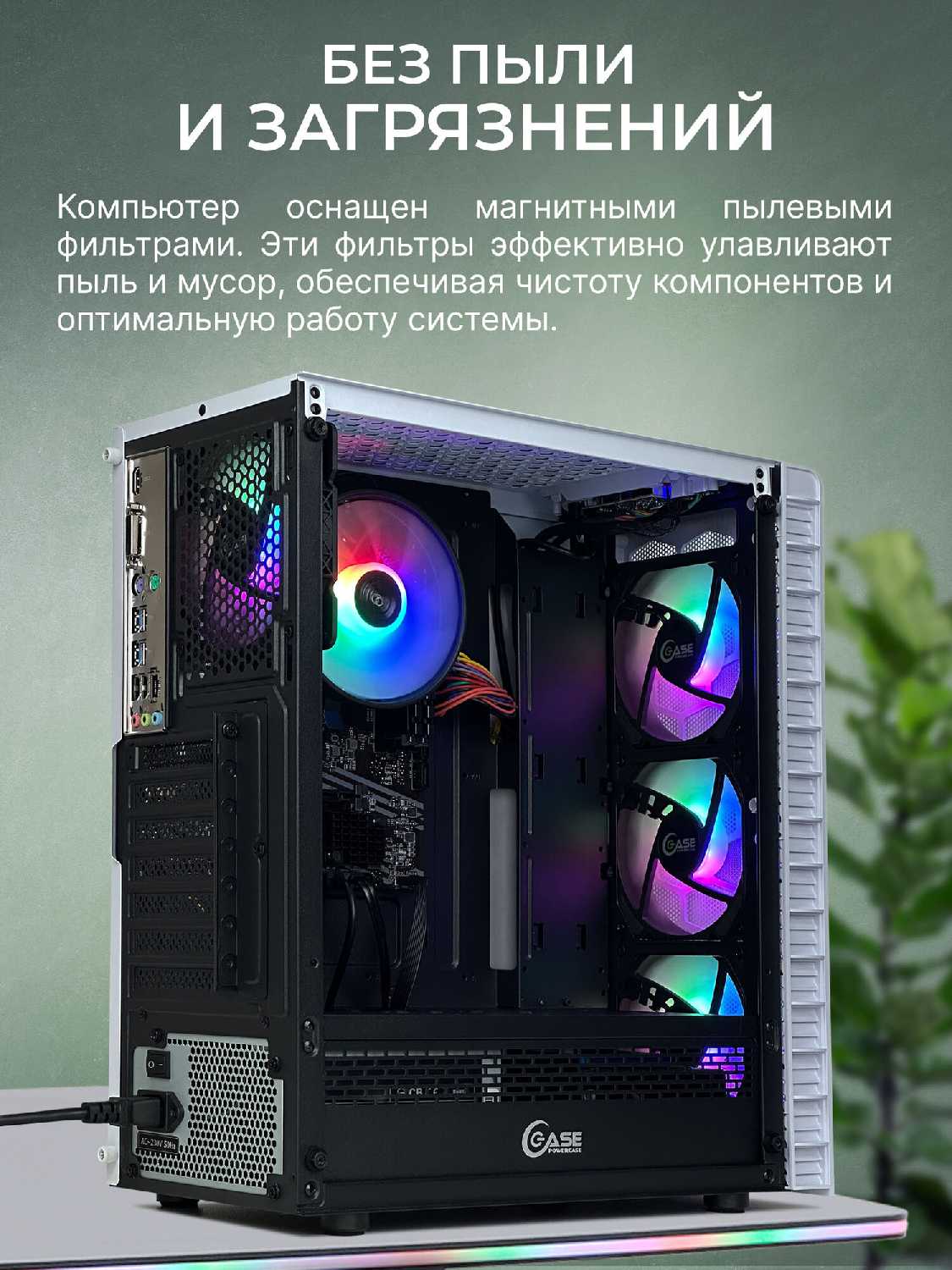 Система охлаждения включает 5 кулеров: 3 на вдув и 1 на выдув, что обеспечивает эффективный отвод тепла даже при высоких нагрузках. Пользователи отмечают, что блок работает тихо, а температура компонентов остается стабильной даже во время игр или работы в ресурсоемких программах. Благодаря продуманной продуваемости корпуса с сетчатыми элементами, перегрев исключен. -