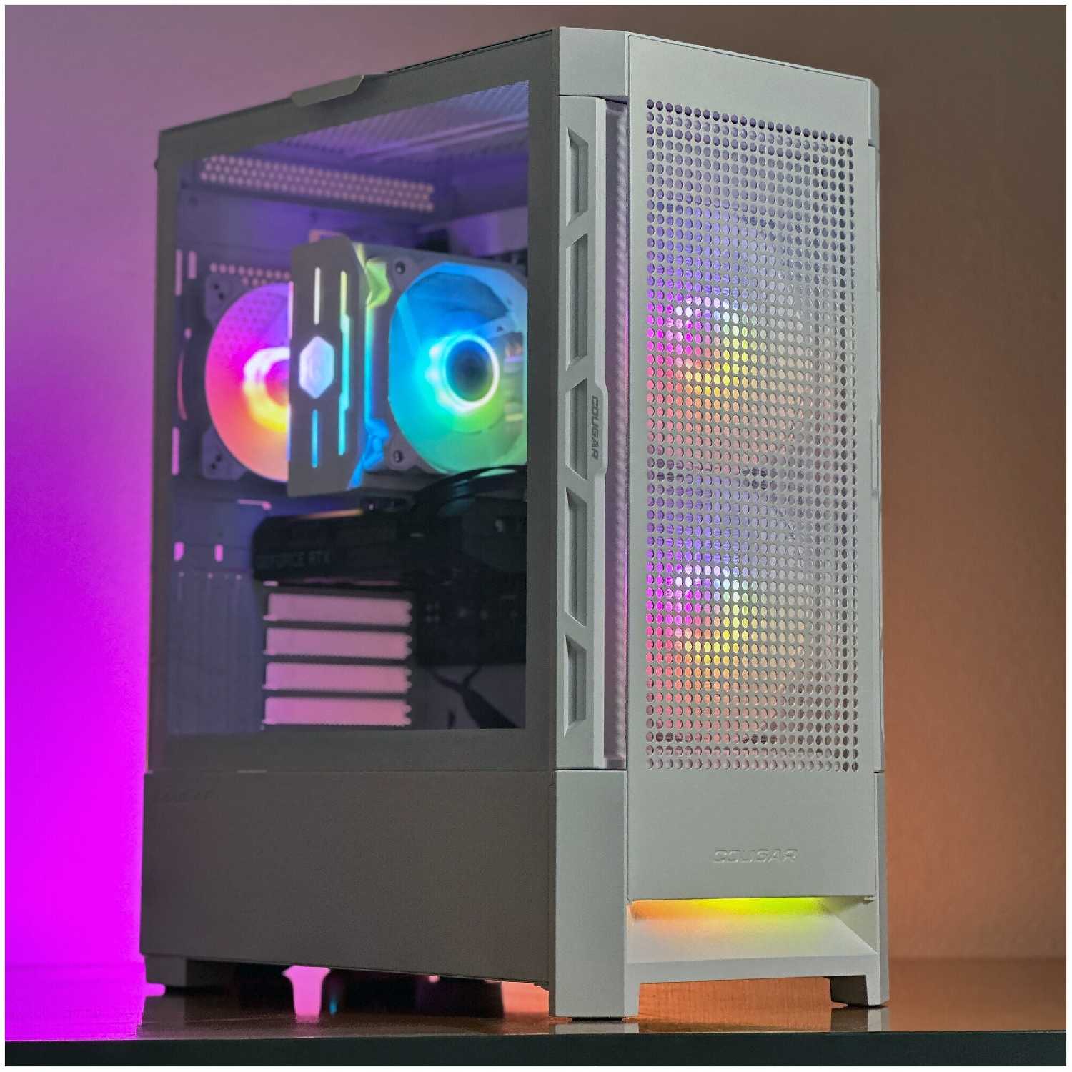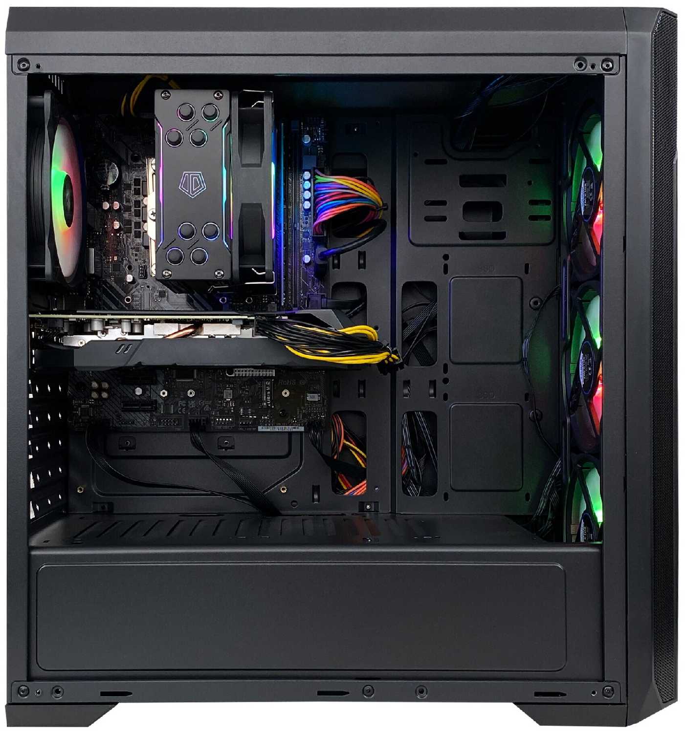 Качество сборки, материалы и дизайн корпуса: Качество сборки оценивается пользователями как высокое: все компоненты установлены плотно, без люфтов, скрипов или вибраций, что свидетельствует о профессиональной сборке и внимании к деталям. Корпус выполнен из качественных материалов, которые на ощупь воспринимаются как надежные и долговечные, ножки устойчивые, обеспечивают ровную установку системы. Дизайн с прозрачной боковой стенкой в тонировке не только эстетически привлекателен, но и функционален, позволяя визуально контролировать состояние компонентов и работу подсветки. RGB-подсветка вентиляторов регулируется по цвету и интенсивности, что позволяет адаптировать ее под preferences пользователя — днем ее можно отключить для минимизации distractions, а вечером включить для создания gaming атмосферы. Размещение USB-портов и кнопки включения на верхней панели корпуса оценено как exceptionally удобное, упрощающее ежедневное использование. Внутренняя компоновка аккуратная, кабели уложены orderly, что улучшает воздушный поток и общий visual appeal. Некоторые пользователи отмечают, что внутренние компоненты (например, оперативная память) могли бы иметь более aesthetic дизайн с накладками, но это не влияет на functional качества. Overall, корпус и сборка получили положительные оценки за сочетание practicality и modern дизайна.
