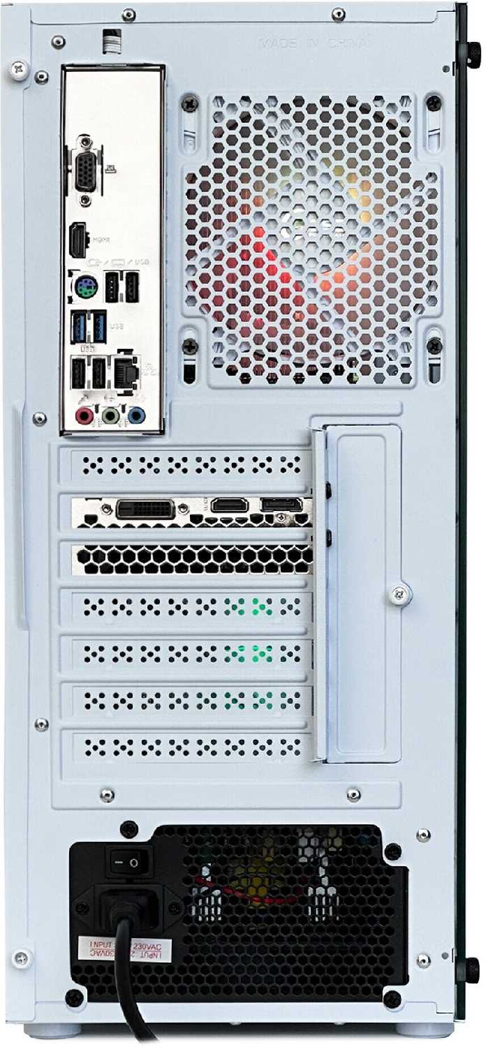 Корпус обладает продуманной эргономикой: кнопка включения и несколько портов USB вынесены на верхнюю панель, что очень удобно для быстрого подключения периферии. На задней панели материнской платы и видеокарты присутствуют все необходимые современные видеоинтерфейсы (включая несколько HDMI) и сетевые разъемы. -