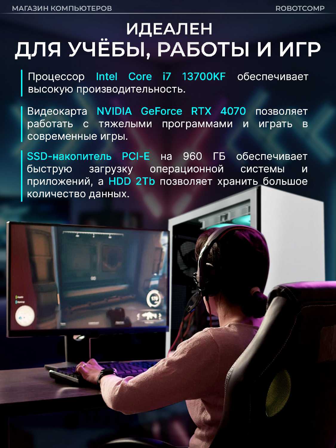 Системный блок покупали сыну на День рождения. Он профессиональный геймер и давно хотел себе такой блок. В общем то выбирал он его себе сам, мы только заказали и оплатили. Человек счастлив, мы тоже. Работает отлично.