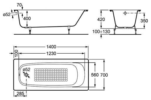 Отзывы о Ванна Roca Continental 140х70 anti-slip 212914001 чугун