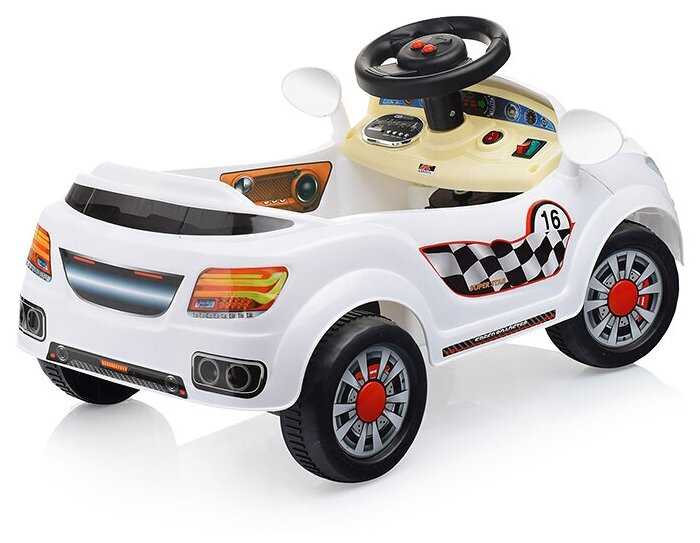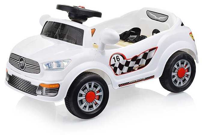Комплектация : | боковые зеркала заднего вида, зарядное устройство, клаксон, пульт ДУ, ремни безопасности, ручка/педаль газа |