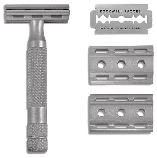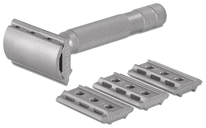 - + Флагманская модель Rockwell Razors – станок 6S, полностью выполненный из нержавеющей стали. Бритва состоит из трёх частей: ручка с высококачественной накаткой, верхняя крышка и нижняя плита. Плита двухсторонняя, всего в комплекте их три: R1/R3, R2/R4 и R5/R6. У каждой плиты свой зазор между плитой и лезвием: