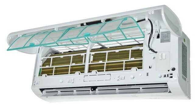 - + Работает на обогрев и охлаждение одинаково качественно. Плюс, который важен для нас – в ней установлены фильтры, которые задерживают различные частицы: пыль, шерсть, пыльцу и при ее работе это заметно.