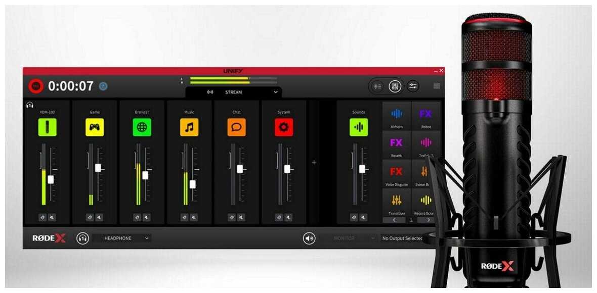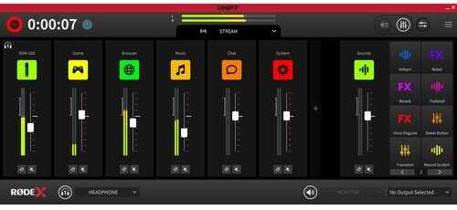 5. Говоря о самом Rode Unify - очень интересная программа по принципу "всё в одном" - тут вам и драйвер для микрофона, и запись аудиодорожки в стерео либо отдельно по потокам, и звуки для стримов можно забиндить, и свой собственный голос изменить, и несколько источников Output настроить (к примеру, если нужно несколько микрофонов развести по настройкам, либо настроить отдельные параметры вывода звука для браузера, дискорда, отдельных игр и т.п.), в общем, чего только нет.
