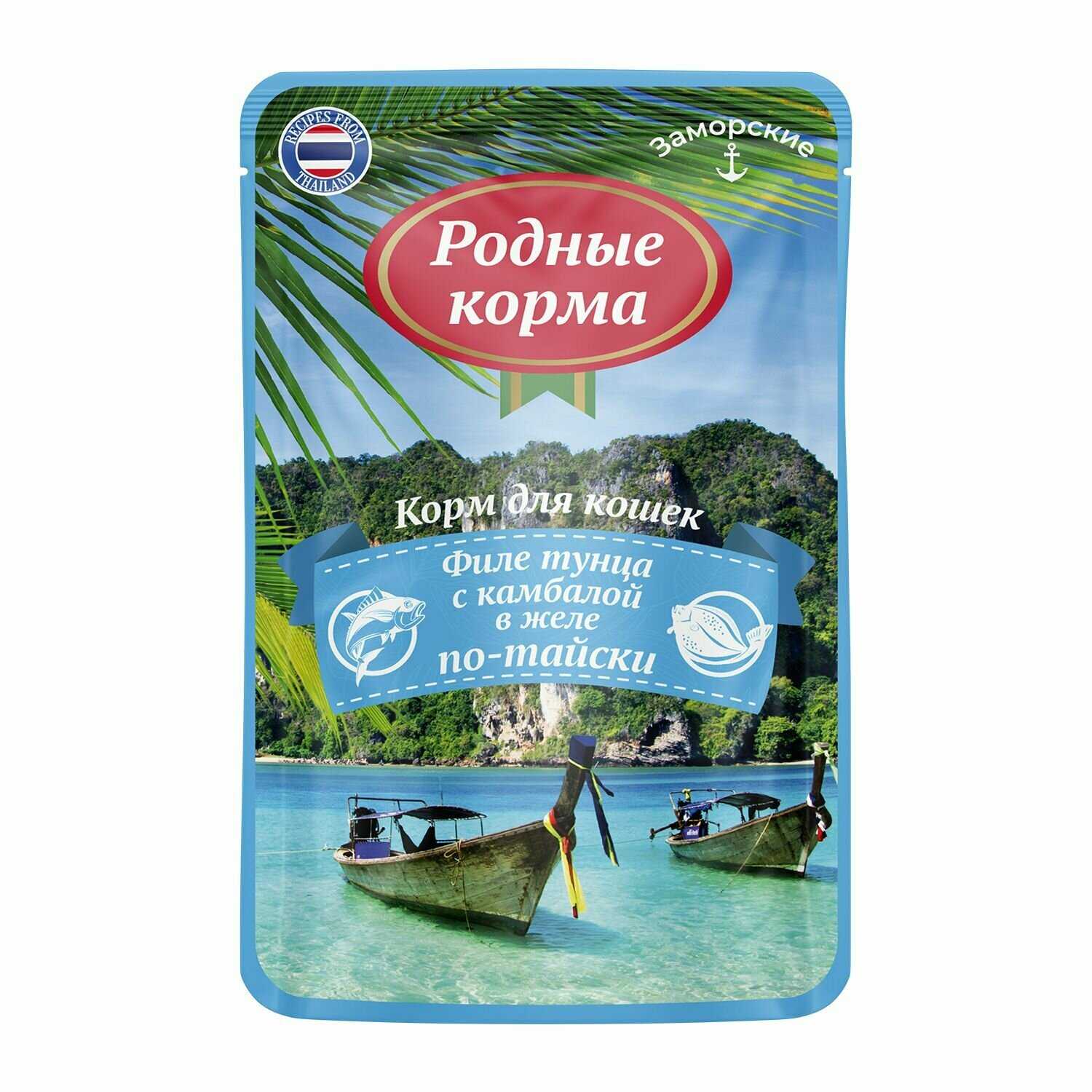 Характеристи Родные корма Заморские паучи (филе тунца с лососем в соусе по-тайски)