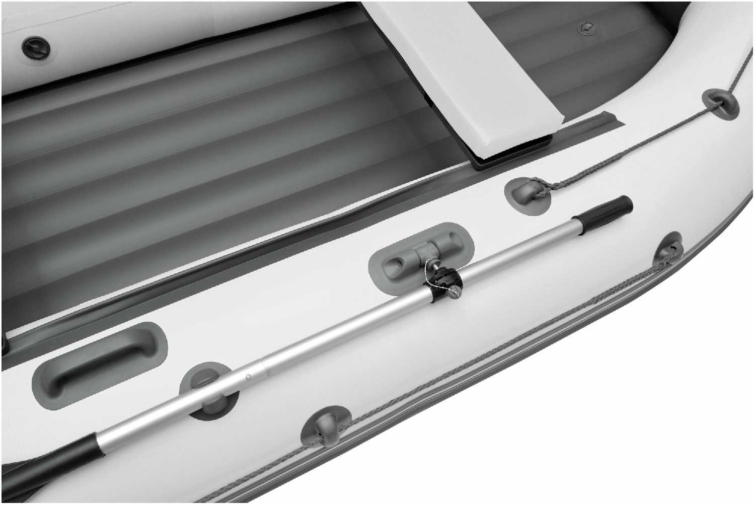 весла, жесткое сиденье, клапан для слива воды, леерный трос, насос, ремкомплект, ручки для переноски, уключины