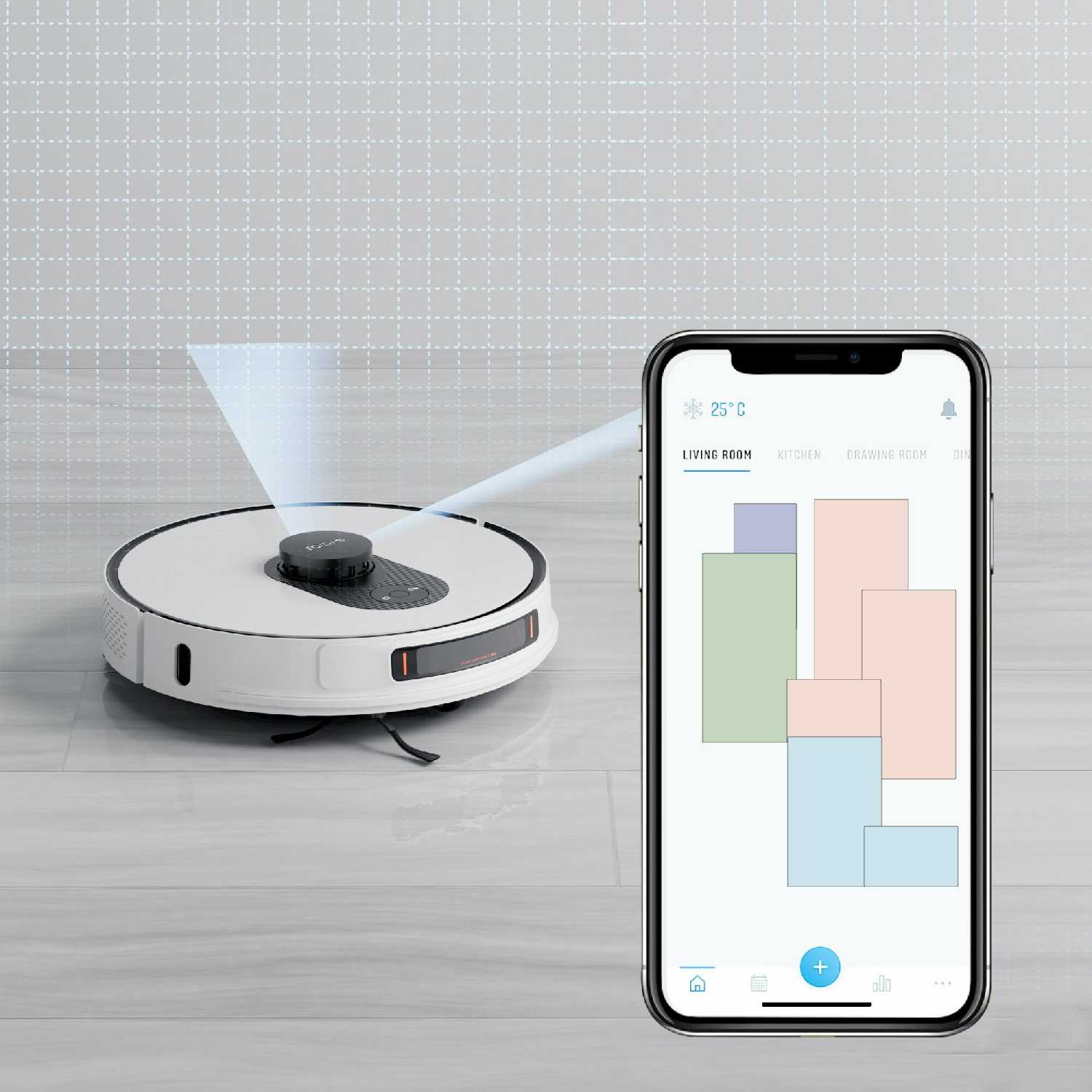- Функция виртуальных запретных зон в приложении позволяет исключать проблемные участки (например, зоны сушилок для белья).
