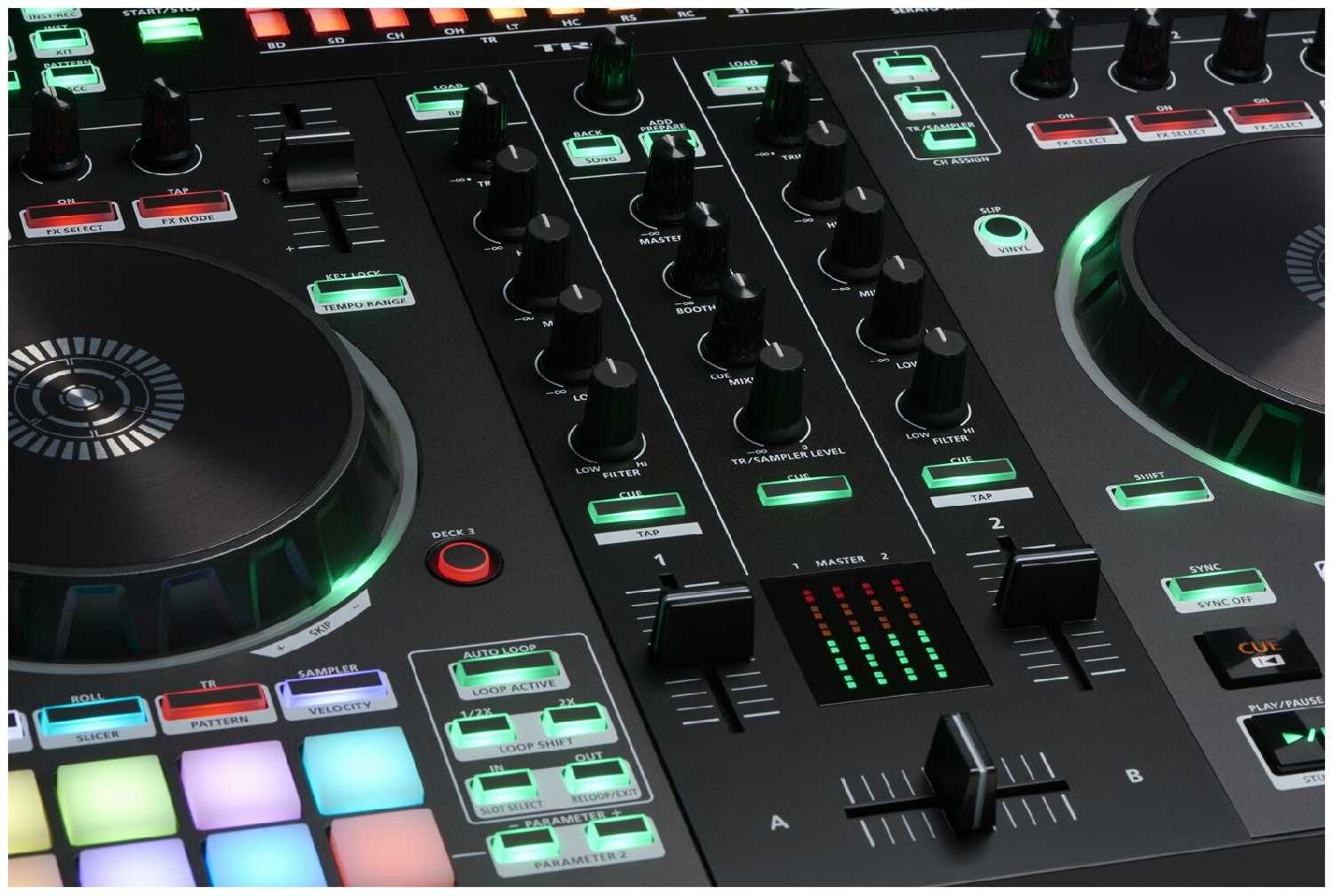 - + Помимо стандартного сведения, есть встроенная драм машина. Возможность создания перкуссионных мостов. Использование своих сэмлов. Большие джоги. Качественная звуковая карта. Возможность подключения линейки Аэро от Роланд. Serato Dj Pro в комплекте.