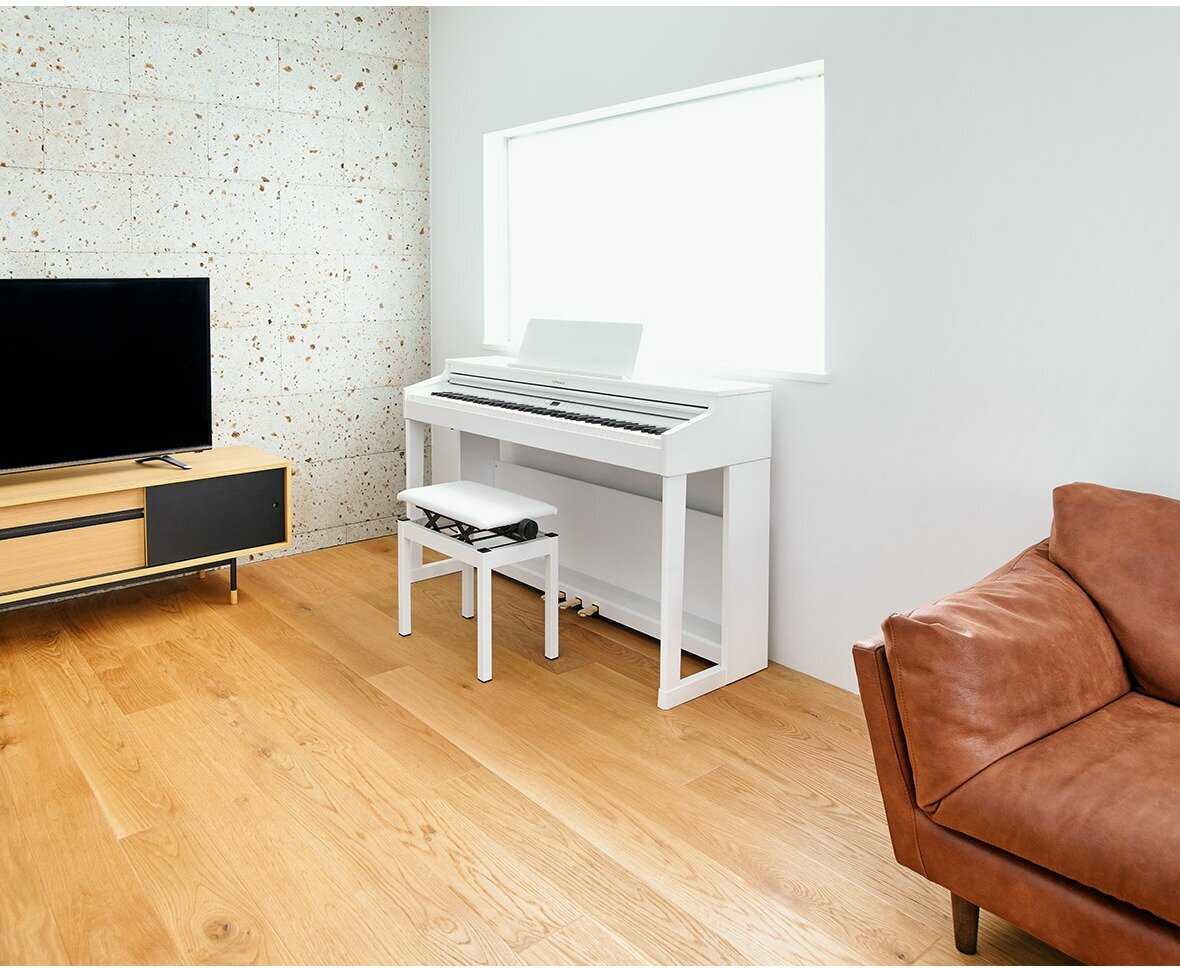 Великолепное пианино в белом цвете. По звучанию и нажатию клавиш не отличить от настоящего. По моему мнению лучшее звучание и ощущение клавиш по сравнению с yamaha, korg, kawai из одного ценового диапазона.