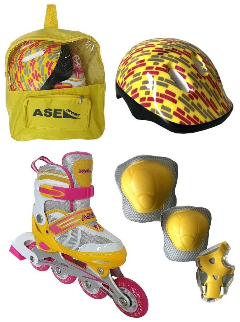 ASE-Sport Набор: сумка, ролики, защита, шлем ASE-COMBO-631 желто-красный S(29-32)