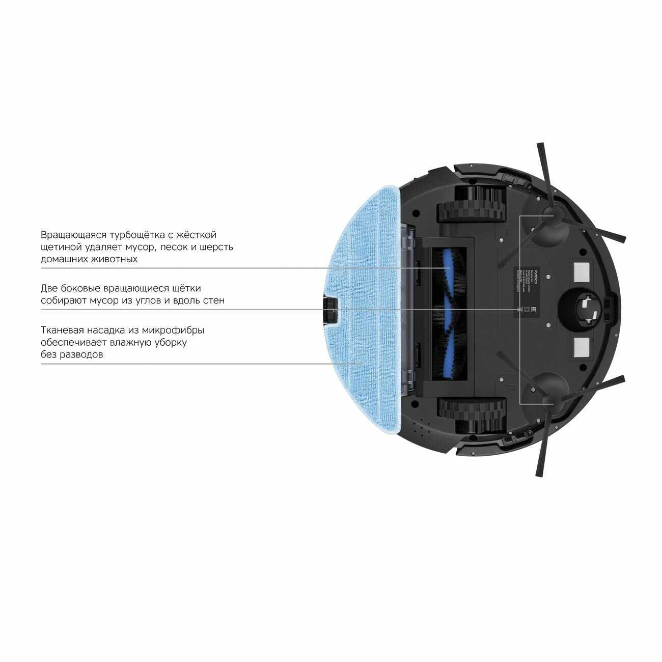 - + Стильный дизайн корпуса, русская голосовая озвучка, не сильно шумит при уборке, возможность управления пылесосом через пульт ДУ или приложение на смартфоне, большая ёмкость аккумулятора, дополнительные щетки для сухой уборки и дополнительная насадка для влажной уборки в комплекте
