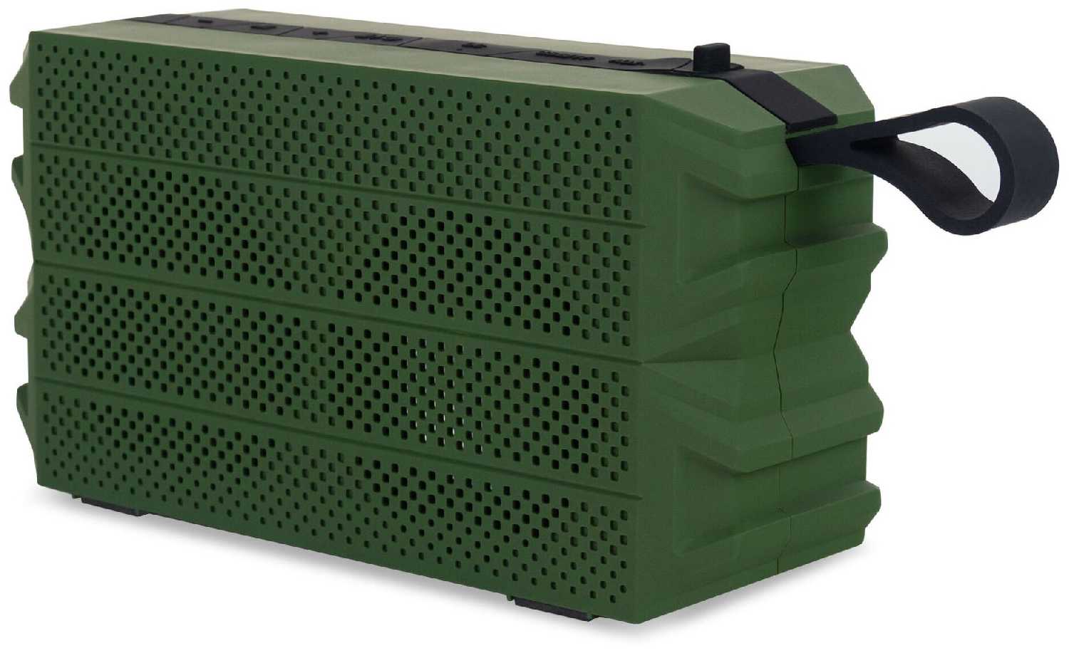 Плюсы: воспроизводит с флэшек. Нет необходимости занимать телефон. Хорошая цена! Клёвая колонка, в военной тематике исполнена. Звук не скажу что басяры колонку рвут, просто ровный и громкая. Переключается все плавно, не хрипит. Рекомендую.