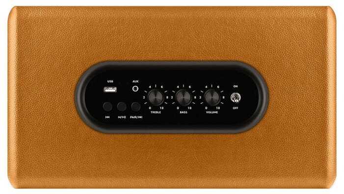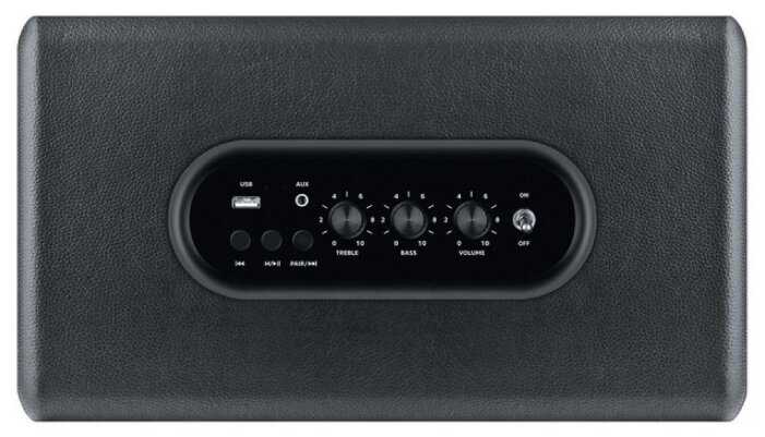 (+)Ретро дизайн (нравится и внешний вид, и крутилки, и включатель, очень похожа на колонку Marshall), мощность звука (соседка этажом выше прибежала на разборки после того как я протестировал громкость), хорошие басы (ну как для такого формфактора, да впрочем и верхи со срединой хороши), блютуз схватывает на раз, регулировка высоких и низких частот, подключение по AUX (иногда подключаю по нему Hi-Fi плеер), подключение по USB, ЦЕНА!!! (6 629, у других от 10 000).