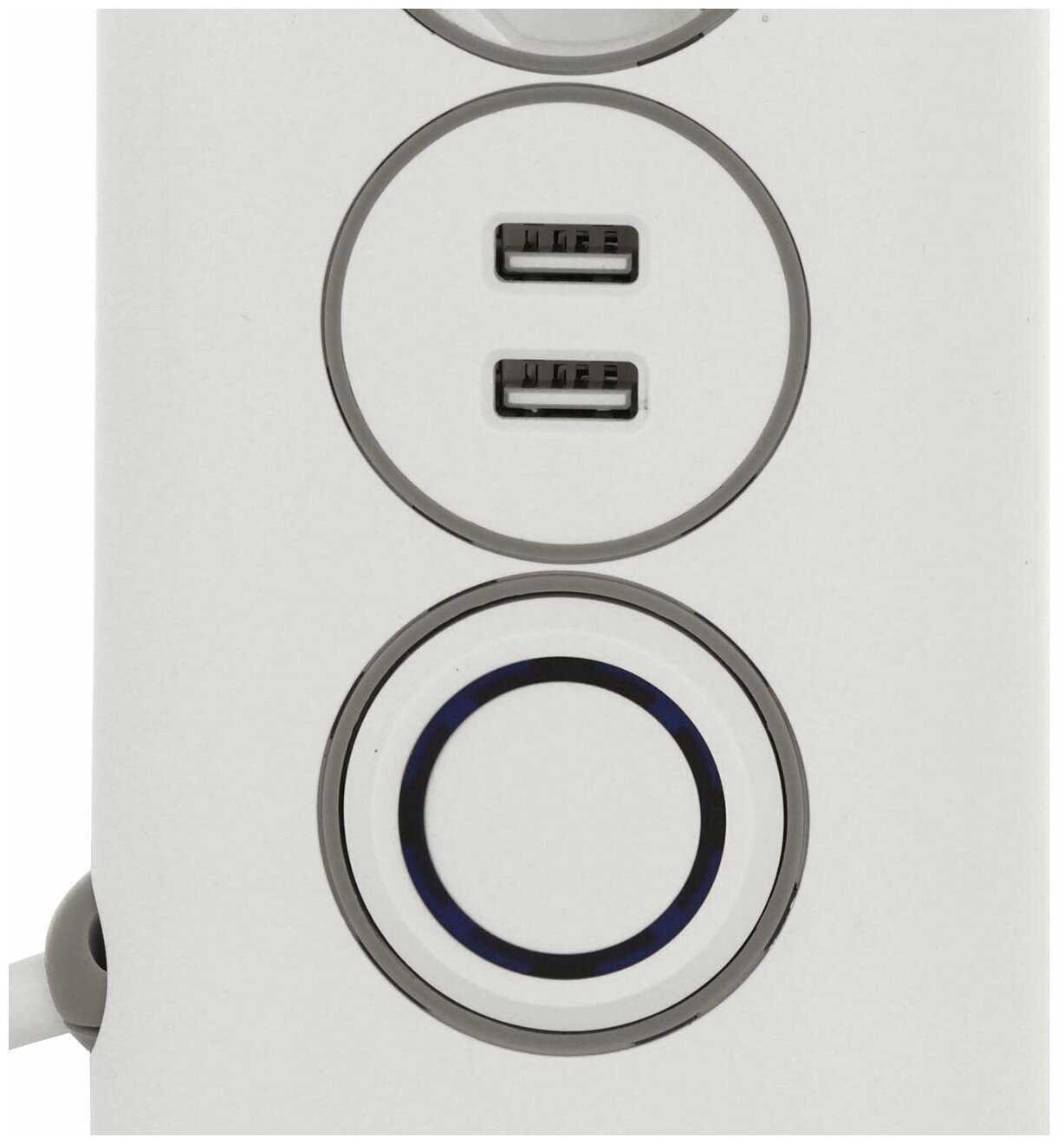 Есть usb-входы и обычные розетки, удобно заряжать много гаджетов сразу. Одной кнопкой можно обесточить весь сетевой фильтр и не выдерживать из розетки.