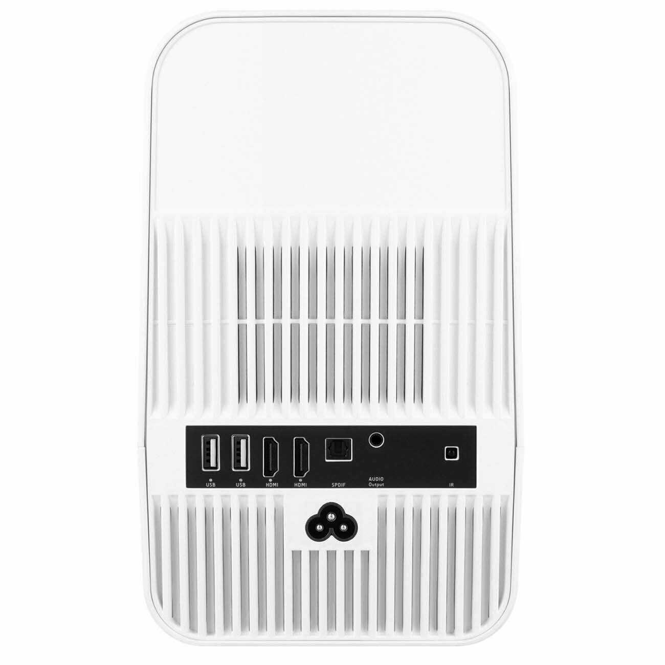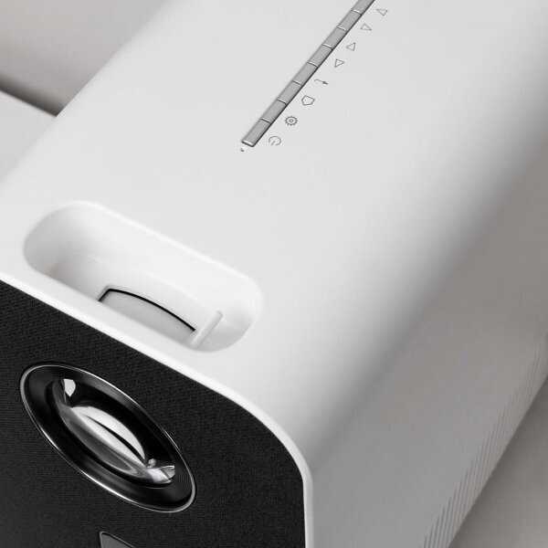 - + Проектор создает четкое с хорошей цветопередачей изображение, особенно если ровный экран использует, специализированный. Картинка по мне идеальная для просмотра фильмов и игр. Размер проектора не сильно большой, я бы сказал компактный. Шум при работе минимальный, еле слышимый. Изначально думал покупать акустику, но думаю повременить, ибо тут неплохая встроенная акустика, громкая и с басами. Еще понравился дизайн, выглядит дорого.