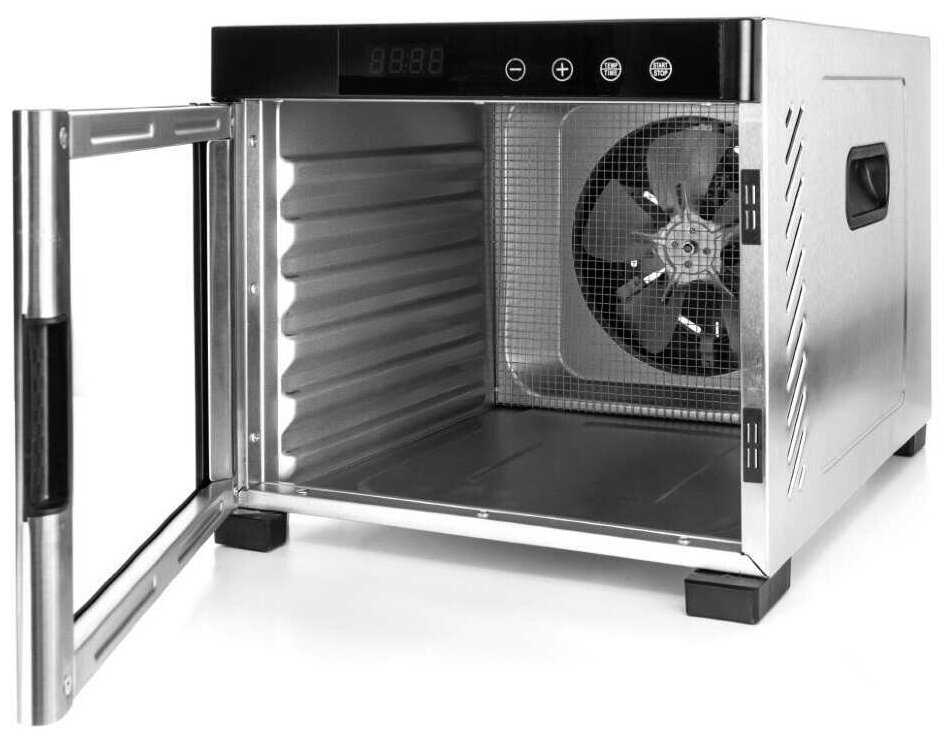 Очень понравилась данная модель, выглядит стильно, единственное она габаритная, но для нас это не проблема - место позволяет. Ну а так как она не маленькая, то вмещается много продуктов для сушки. В управлении все очень легко и просто. Испытали на рыбе- получилось идеально. сейчас на очереди вяленые помидоры, надеюсь тоже все будет супер. Рекомендую!