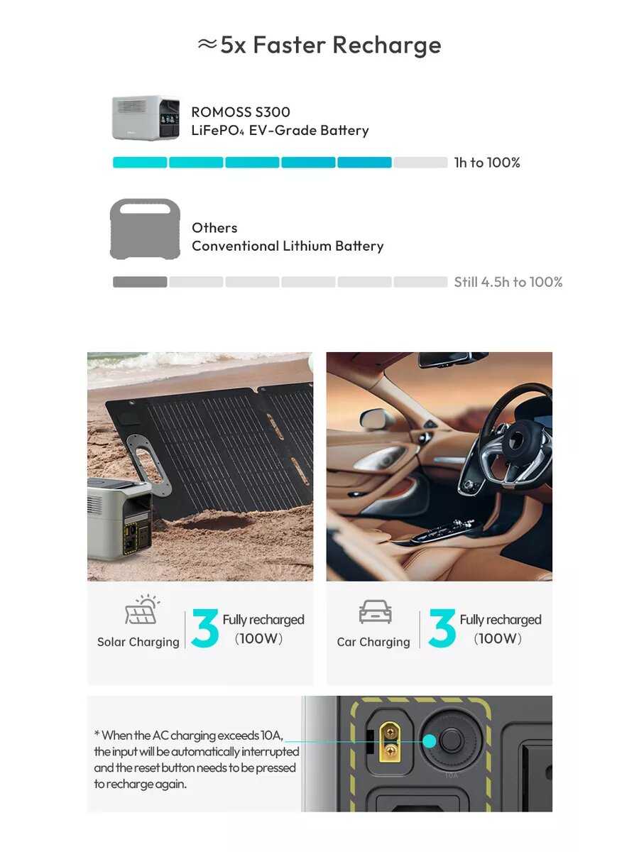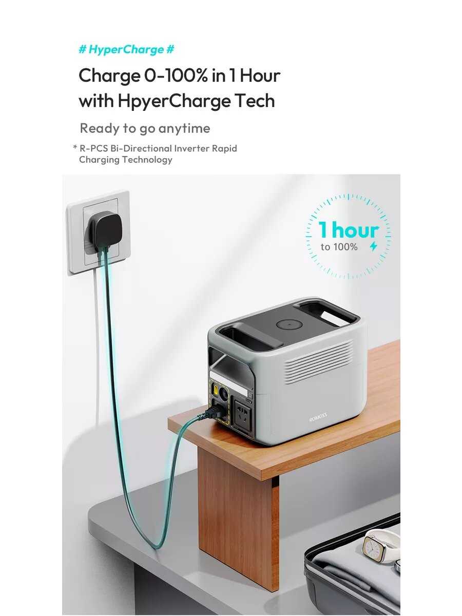 - Функция быстрой зарядки аккумулятора станции от сети (около 1.5 часа с 0 до 100%) значительно сокращает время простоя между использованиями.