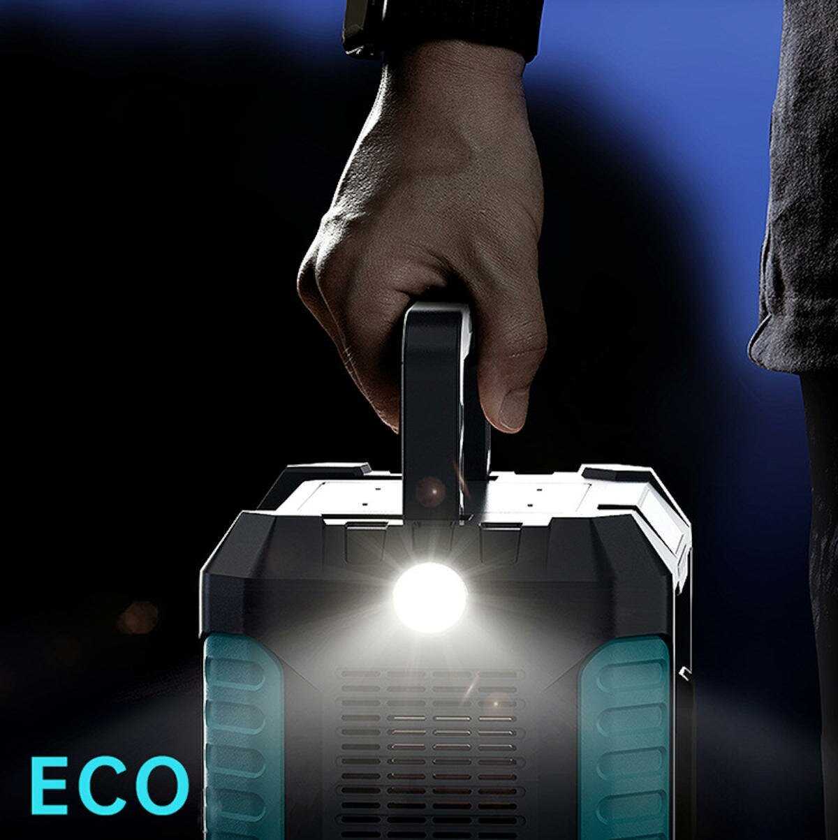 Станция оснащена двумя источниками света: фонариком в ручке и боковым фонарём. Их мощности достаточно для подсветки, но пользователи отмечают, что луч бокового фонаря может давать не очень равномерное пятно с желтоватым оттенком. Многие сочли бы более полезной не направленную, а рассеянную светодиодную панель для освещения палатки или рабочего стола. -