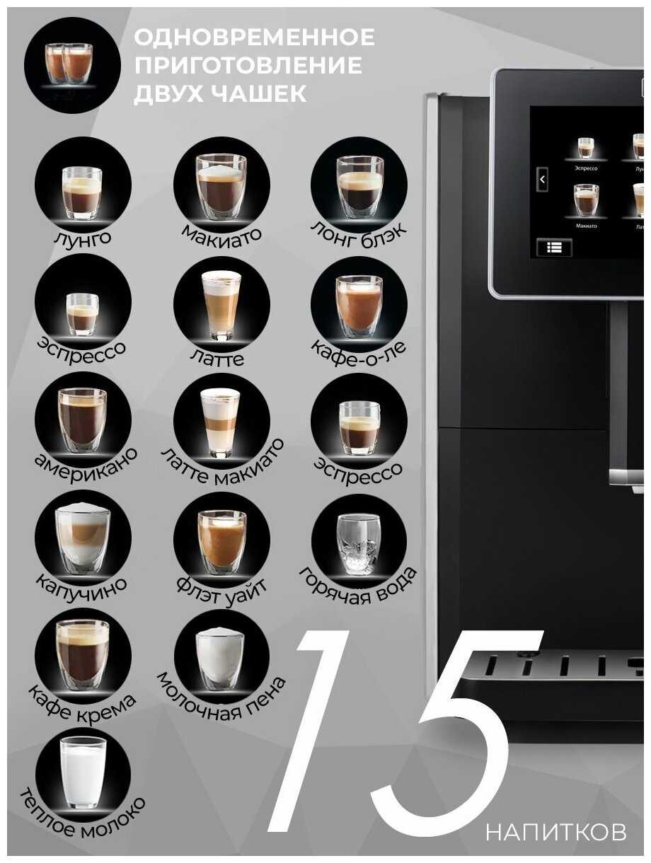 жесткость воды, количество пены, крепость кофе, объем порции горячей воды, температура кофе