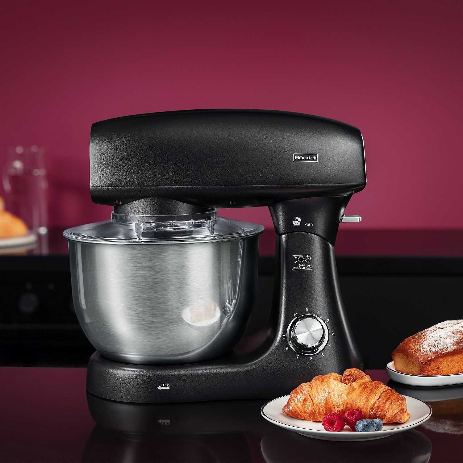 - Плавный старт и крышка предотвращают разлет теста или жидкостей по кухне.