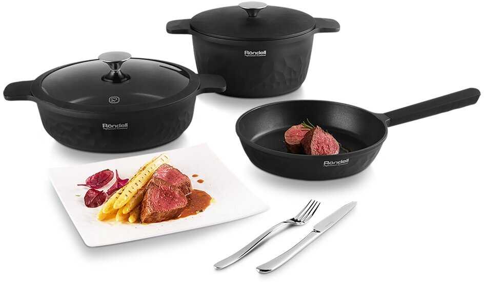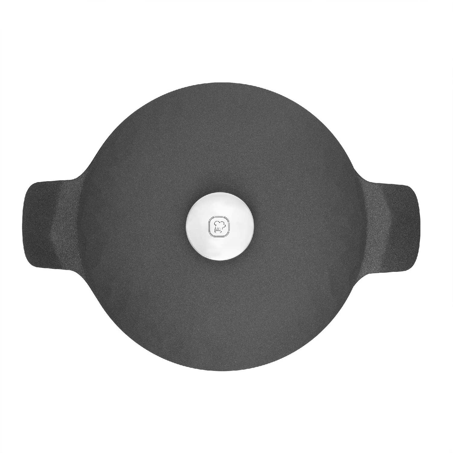 - + Гарантия год, толстое дно, современный внешний вид, 3 слоя антипригарного покрытия