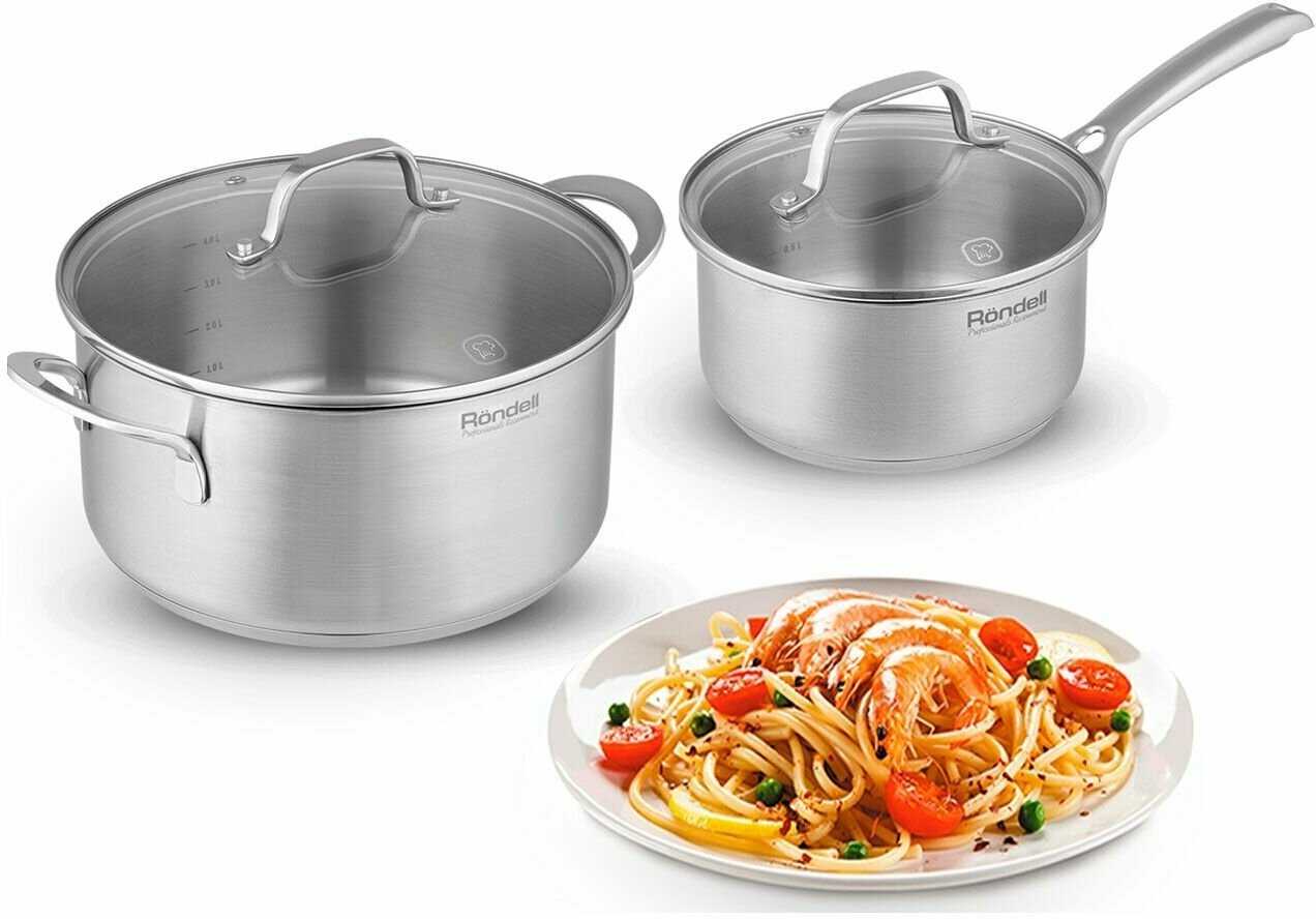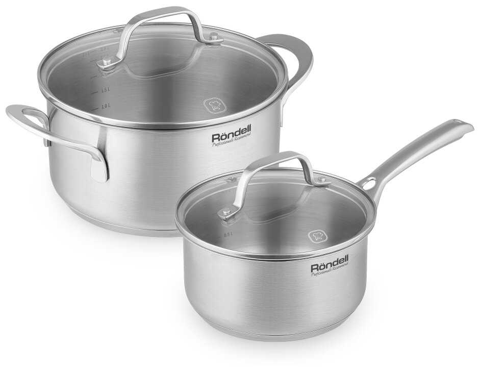 - + До этого обзавелись набором сковородок от тех же Rondell, подарила дочь. Этот же набор купили сами. И ни сколько не жалеем. Ковш с кастрюлей и оба с крышками. Специально брали без силиконовых ручек, побоялись, что облезут в посудомойке. Внешний вид красивый, минималистичный, полированный металл.