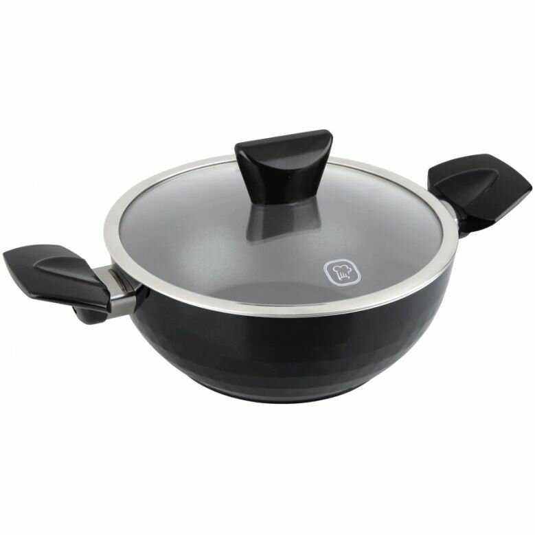 - + Внешне красивая, за счет интересного штампа поверхности кастрюли и больших удобных ручек. Также крышка есть со стальным бортом. Емкость кастрюли 2 литра. А главное, подходит для мытья в посудомоечной машине.