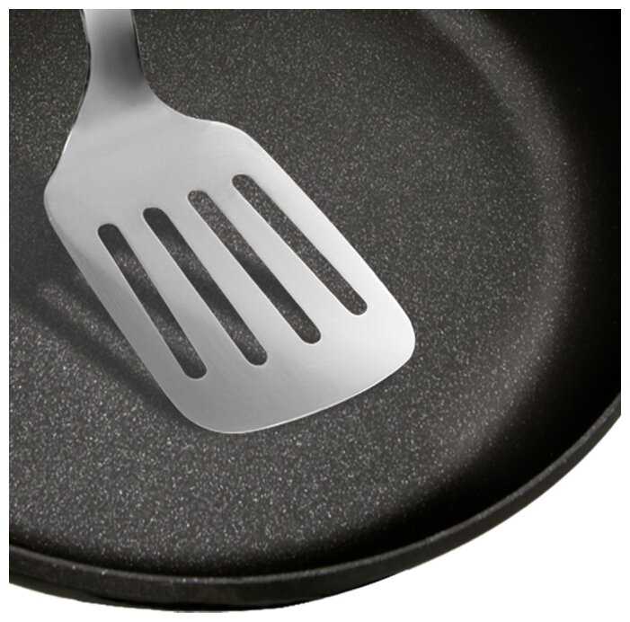 - + Нормальная сковорода, 26 см - борта достаточно крутые, не слишком тяжелая.