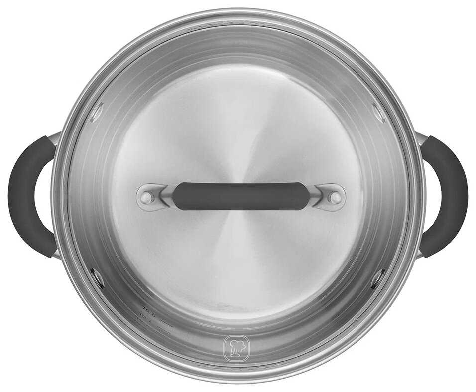 - + Удобные ручки с силиконовыми вставками не нагреваются и не скользят.