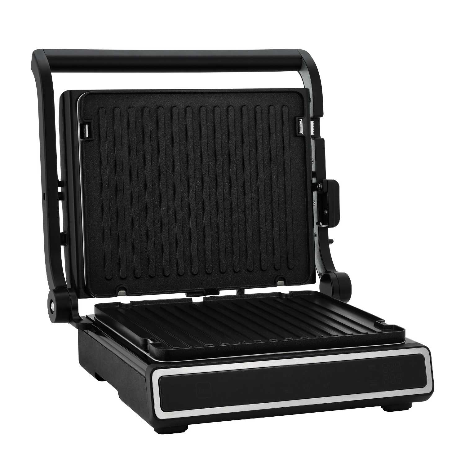 - + Гриль мощный. С простым сенсорным управлением. На передней панели много функций, многими даже не пользовался. Когда-нибудь доберусь и попробую все. Можно разогревать нижнюю и верхнюю панели до разных температур. Есть термощуп. Съемные пластины, разрешено погружать в посудомоечную машину.