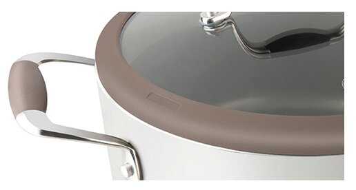 - + Цвет «латте» действительно приятный глазу и необычный, особенно если вся другая посуда стандартная. Алюминий, но он достаточно толстый, чтобы кастрюля не казалась слишком лёгкой и хрупкой. Это мне нравится, потому что я сразу чувствую, что держу в руках качественную вещь.