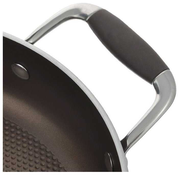 - + Красивый внешний вид. В наличии удобная стеклянная крышка с силиконовой ручкой. Практически не нагревается. Такие же ручки и на самом сотейнике. 3-слойное антипригарное покрытие TriTitan.