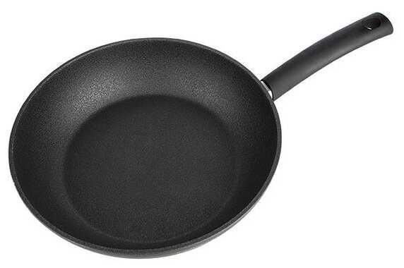 Универсальность модели — её главный козырь. Высокие бортики (до 6 см) превращают сковороду в гибрид сковороды и сотейника, позволяя готовить объемные блюда вроде плова или рагу. Эргономичная ручка из бакелита, не нагревающаяся даже при длительной жарке, делает процесс комфортным. При этом отсутствие крышки в комплекте и необходимость докупать аксессуары отдельно — явный минус для тех, кто ценит готовые решения.