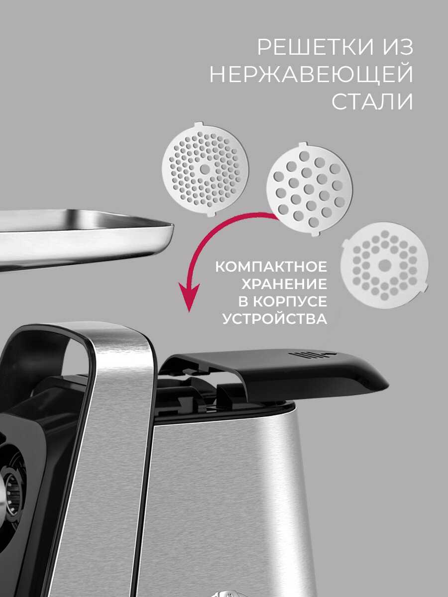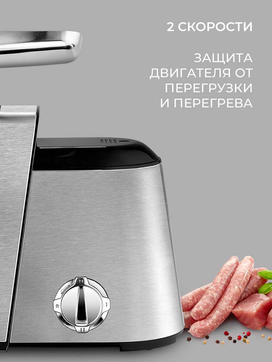 - + Не большого размера, имеет две скорости, мощность 2000вт, моментально превращает мясо в фарш, легко разбирается и моется.