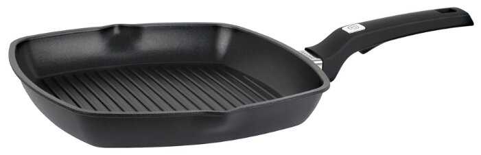 Прикольная сковорода, рельефное дно оставляет аппетитные полоски, как от ресторанного гриля. Прогревается быстро и равномерно. Удобная ручка с покрытием не греется и не скользит в руке. Также удобно, что она квадратная и широкая, за счет чего помещаются большие куски стейков