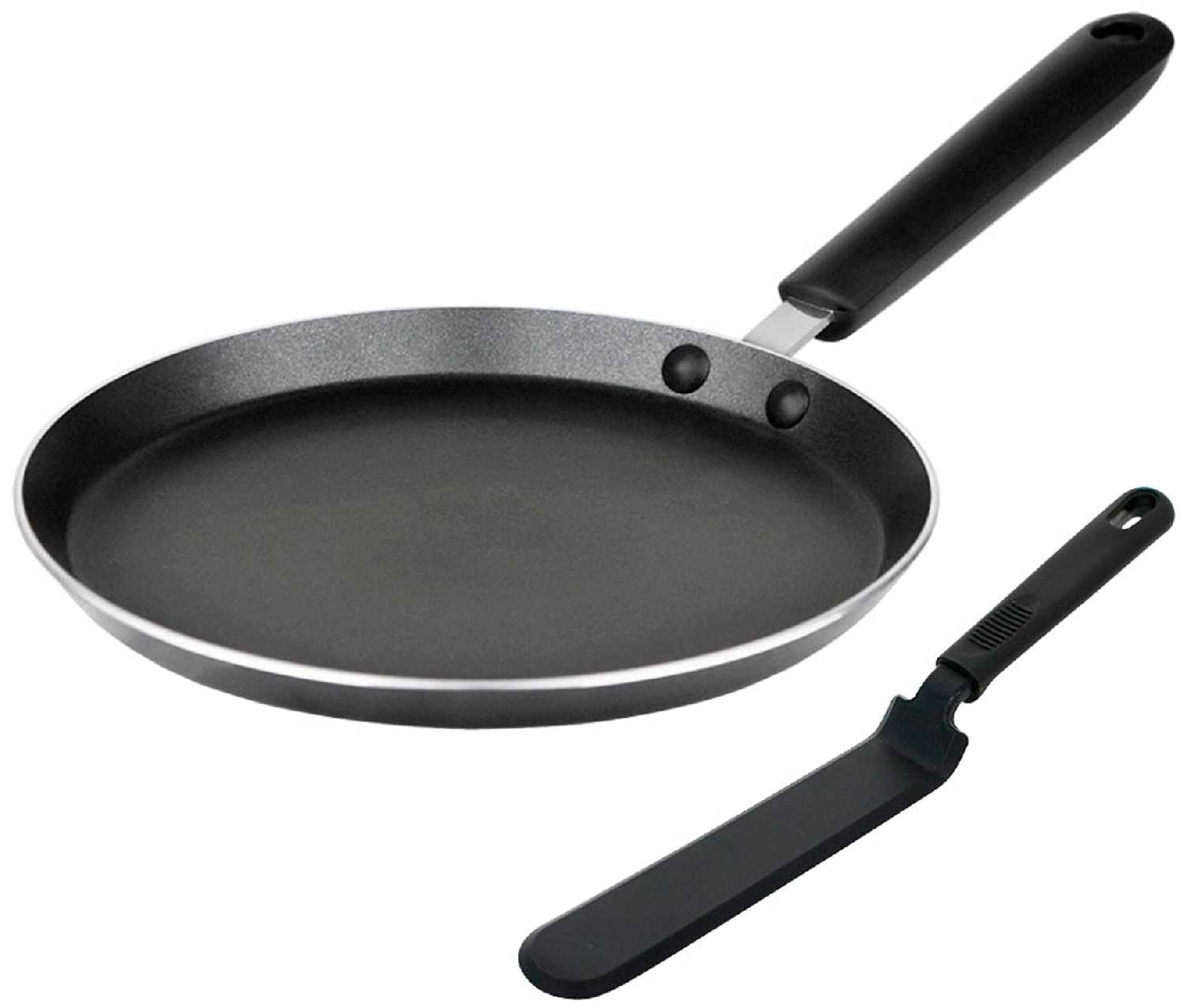 - + Удобная блинная сковорода, отличное покрытие - ничего не подгорает и не прилипает, даже если готовить всего на капле масла. Сковорода подходит для всех плит, даже для индукции. Удобная лопатка в комплекте. Цена приятно удивила.